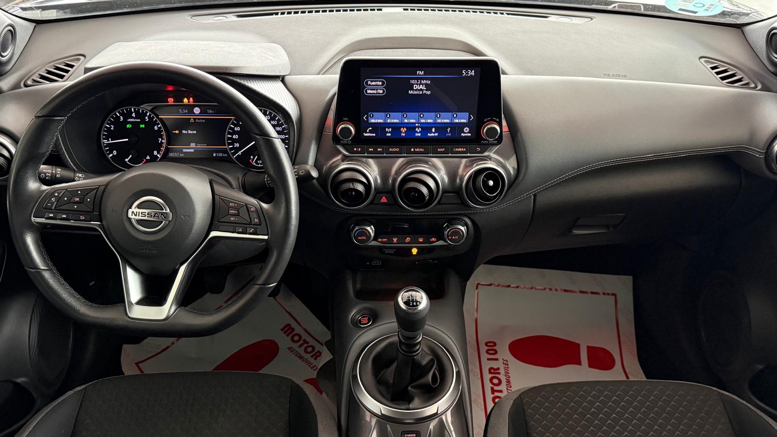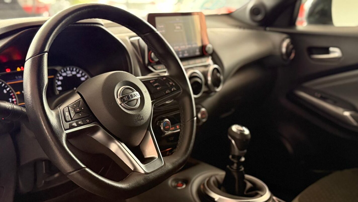 En el interior, el Juke N-Connecta destaca por un habitáculo moderno y bien equipado, pensado para ofrecer comodidad y conectividad. Cuenta con volante multifunción, asientos deportivos monoforma, climatizador automático y elementos de confort como iluminación ambiental y reposabrazos central. En cuanto a tecnología, incorpora un sistema de infoentretenimiento con pantalla táctil, conectividad Apple CarPlay y Android Auto, además de sistemas como navegador, radio digital (DAB) y conectividad Wi-Fi para dispositivos. También dispone de sensores de lluvia y otros asistentes de comodidad que hacen la experiencia de conducción más intuitiva y cómoda.
