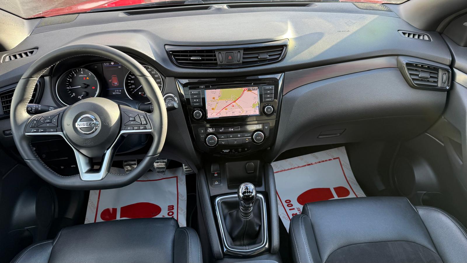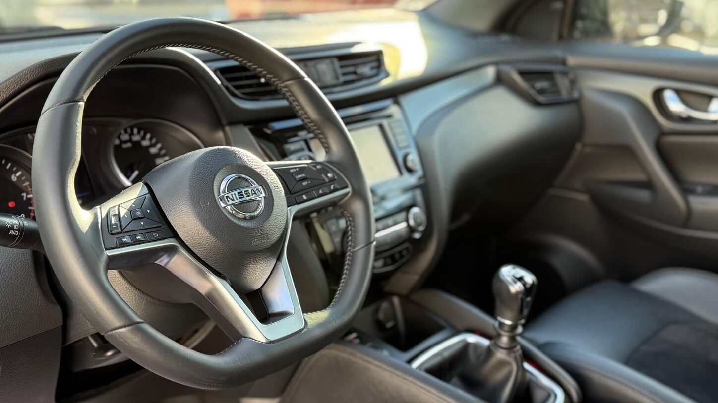 En el interior, el Nissan Qashqai N-TEC ofrece un habitáculo cómodo y tecnológico pensado para facilitar la conducción y mejorar el confort. La pantalla táctil multimedia con conectividad para smartphone permite acceder fácilmente a sistema de navegación, audio y ajustes del vehículo, mientras que los materiales y acabados transmiten una sensación de calidad. Además, detalles como el volante multifunción, climatizador, asistentes de ayuda a la conducción y sistemas de seguridad aportan tranquilidad y comodidad en cada trayecto, completando una experiencia de uso moderna y bien equipada.