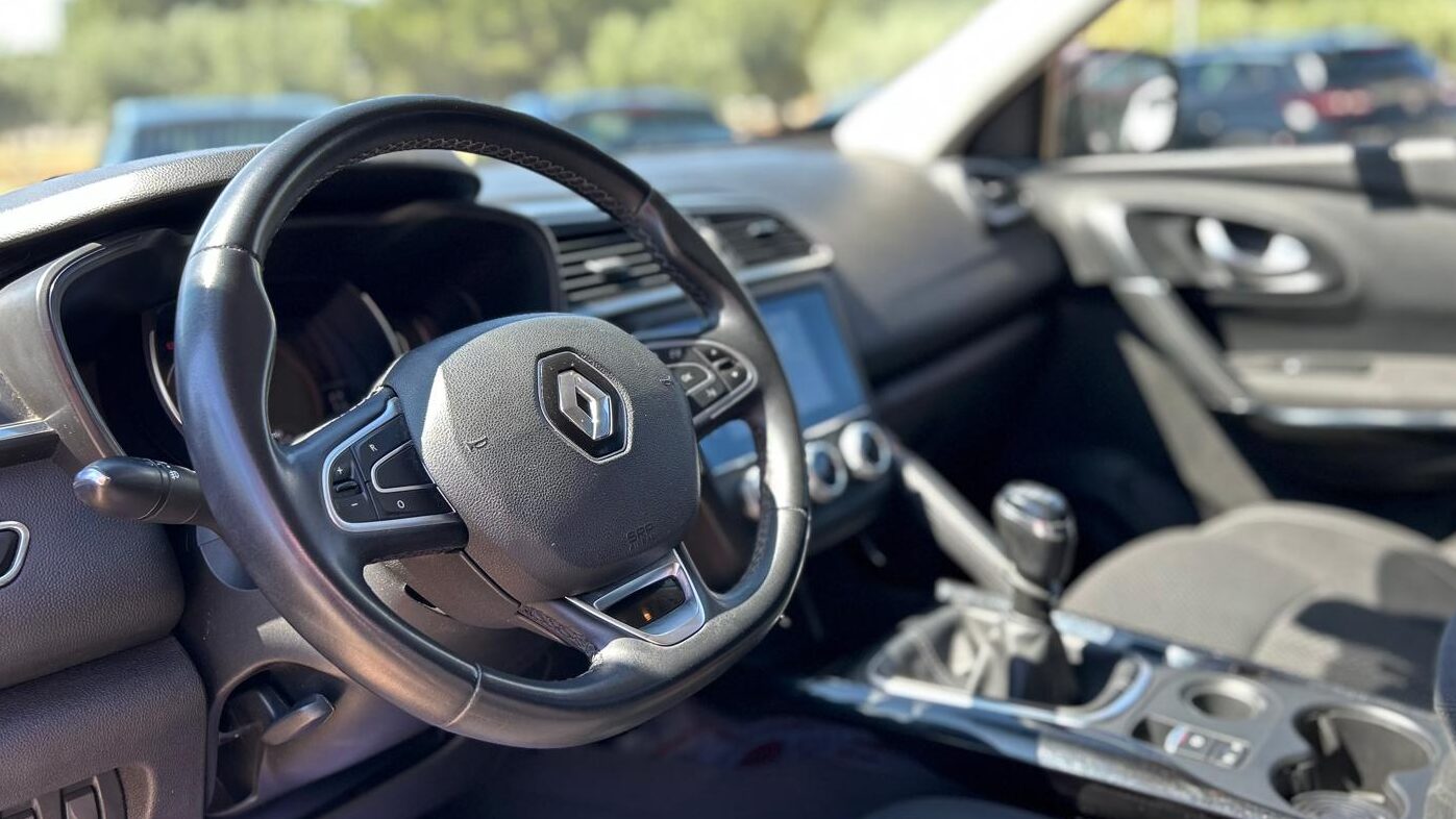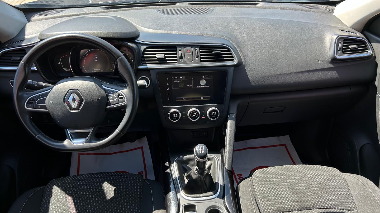 El interior del Kadjar está diseñado con materiales de buena calidad, con acabados suaves al tacto y detalles cromados que le dan un aspecto premium. Ofrece un amplio espacio interior con capacidad para cinco pasajeros. El maletero tiene una capacidad de alrededor de 472 litros, ampliable abatiendo los asientos traseros e incluye un sistema de infoentretenimiento con pantalla táctil de 7 pulgadas compatible con Apple CarPlay y Android Auto. Además, cuenta con un sistema de navegación, Bluetooth y puertos USB.